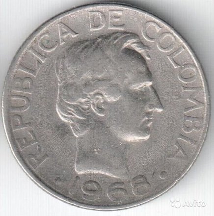 Аверс: Франциско де Паула Сантандер (1792-1840) – национальный герой Колумбии в борьбе за независимость.