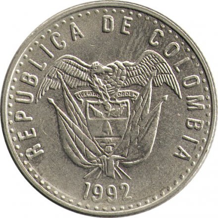 Obv: Flagged arms above date. Rev: Denomination within wreath, 66 beads circle around rim. Note: Varieties exist.