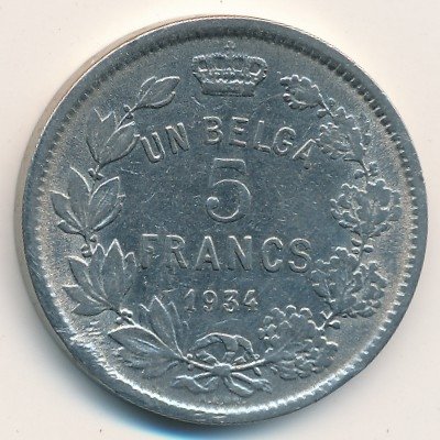 Бельгия 5 франков 1934 год