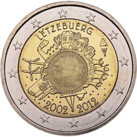 Люксембург 2 евро 2012 год - 10 лет наличному обращению евро