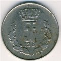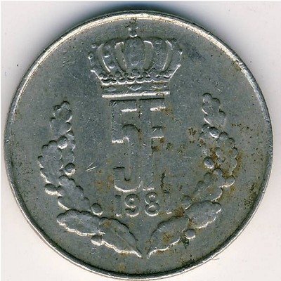 Реверс: В центре - обозначение номинала, ниже год чекана. Сверху над номиналом корона, ниже номинала и года изображены две ветви с листьями.
