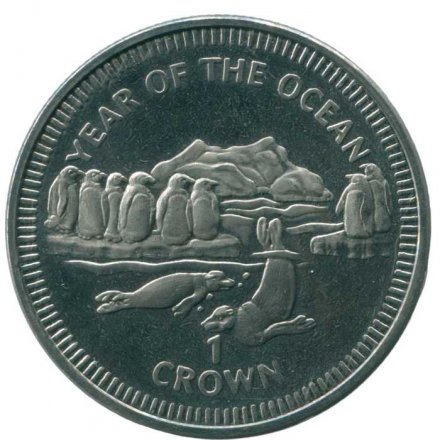Остров Мэн 1 крона 1998 год - Год океанов. Пингвины и морские котики