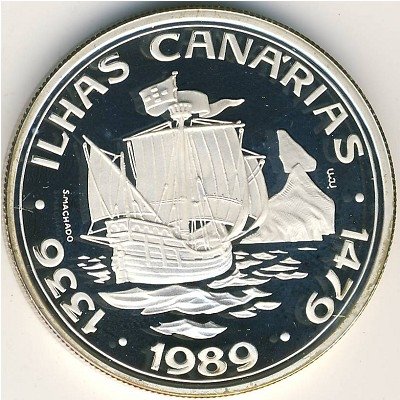 Португалия 100 эскудо 1989 год - Открытие Канарских островов (Ag)